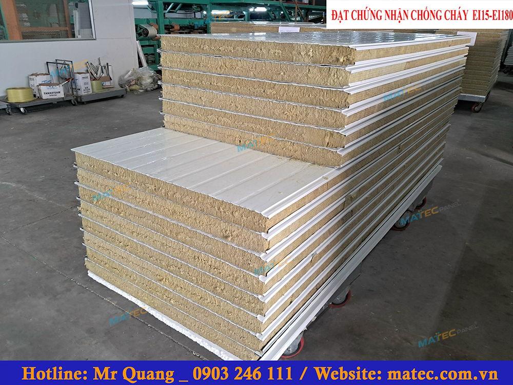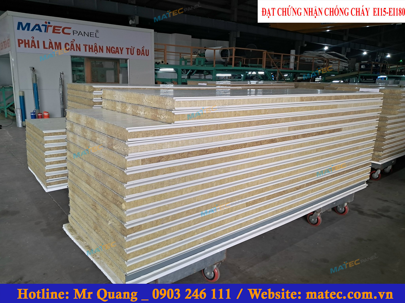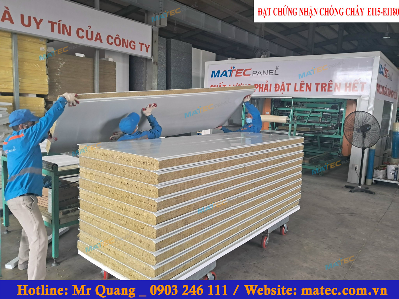 Vách panel chống cháy EI150 phút hay còn gọi là vách panel chống cháy với khả năng ngăn cháy trong thời gian lên tới 150 phút. Tấm Rockwool Panel EI150 sản xuất tại nhà máy MatecPanel được kiểm định của Cục PCCC và đạt chuẩn Kiểm Định Vách Panel Chống Cháy EI150