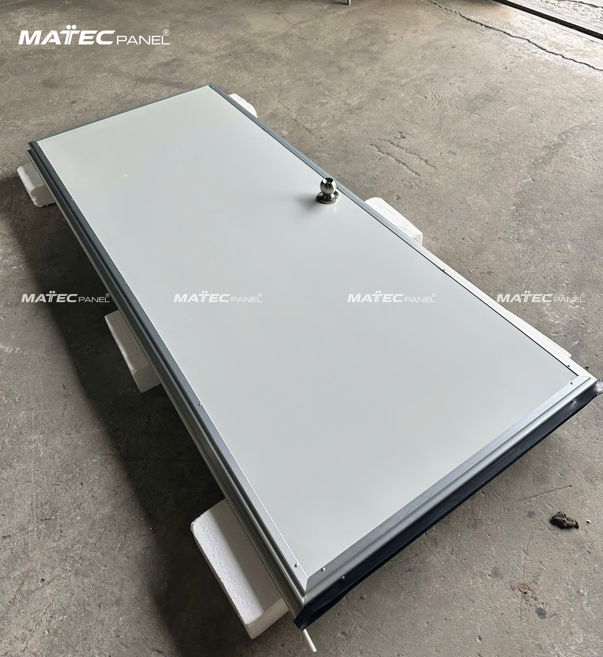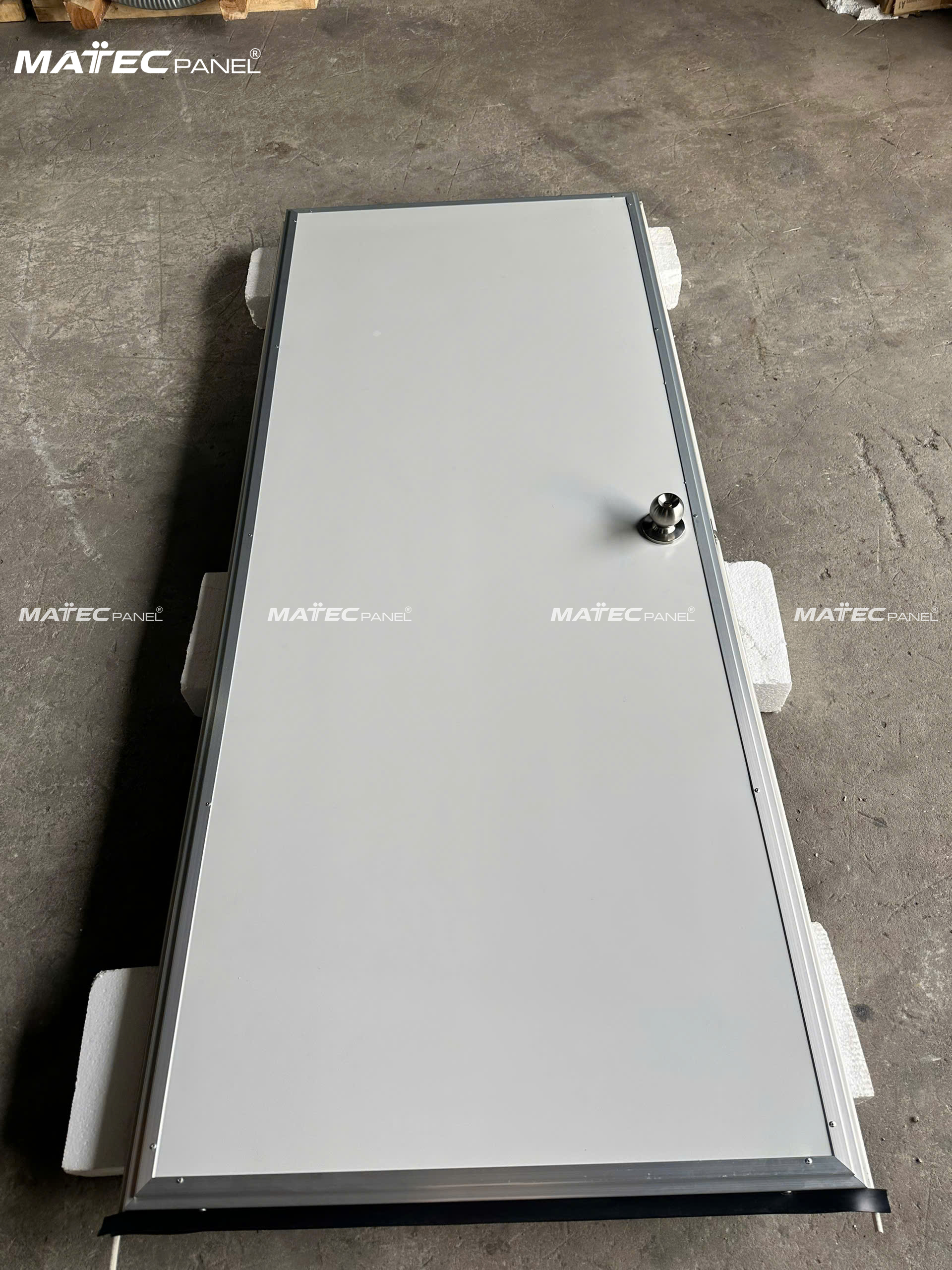 Cửa panel cách nhiệt MatecPanel — thiết kế chắc chắn, lắp đặt nhanh, phù hợp cho kho, phòng kỹ thuật và nhà lắp ghép. Khung nhôm chắc, lõi cách nhiệt, gioăng kín khít, nhiều lựa chọn bề mặt và phụ kiện.