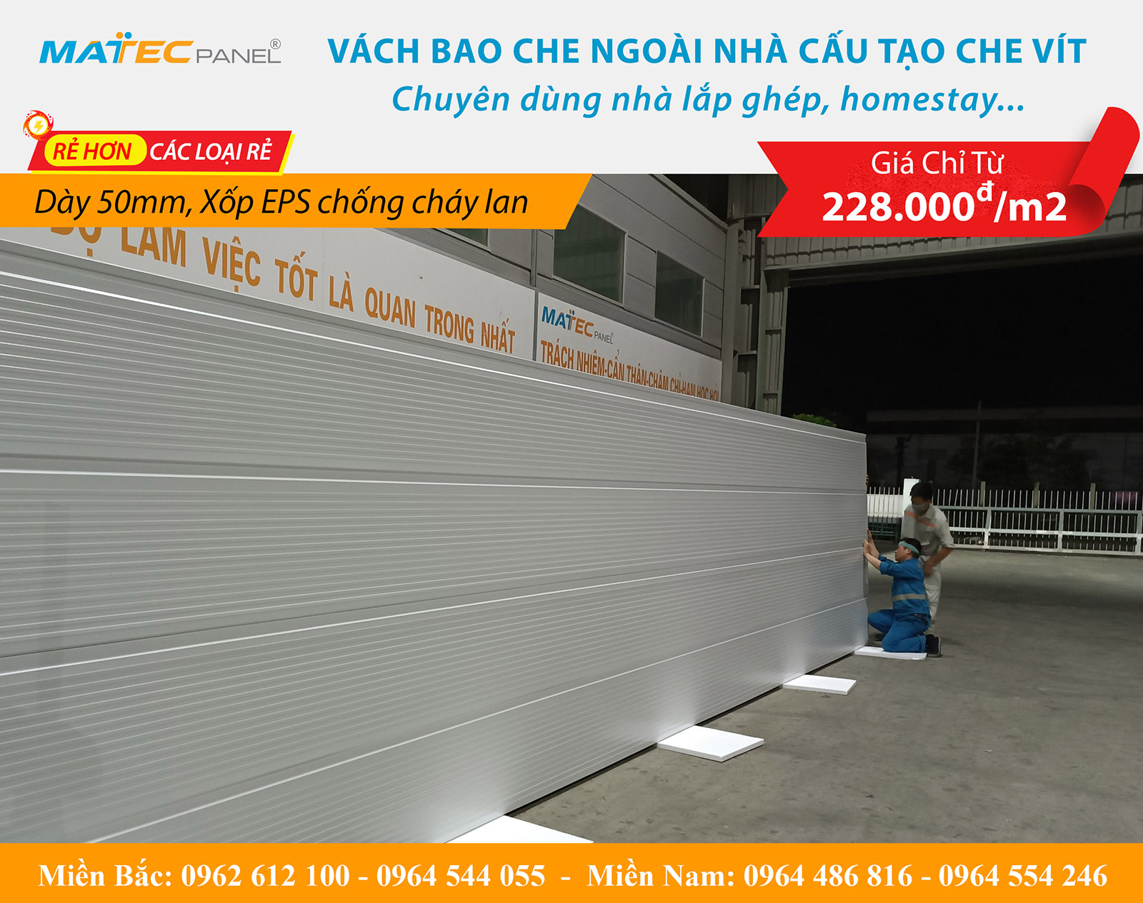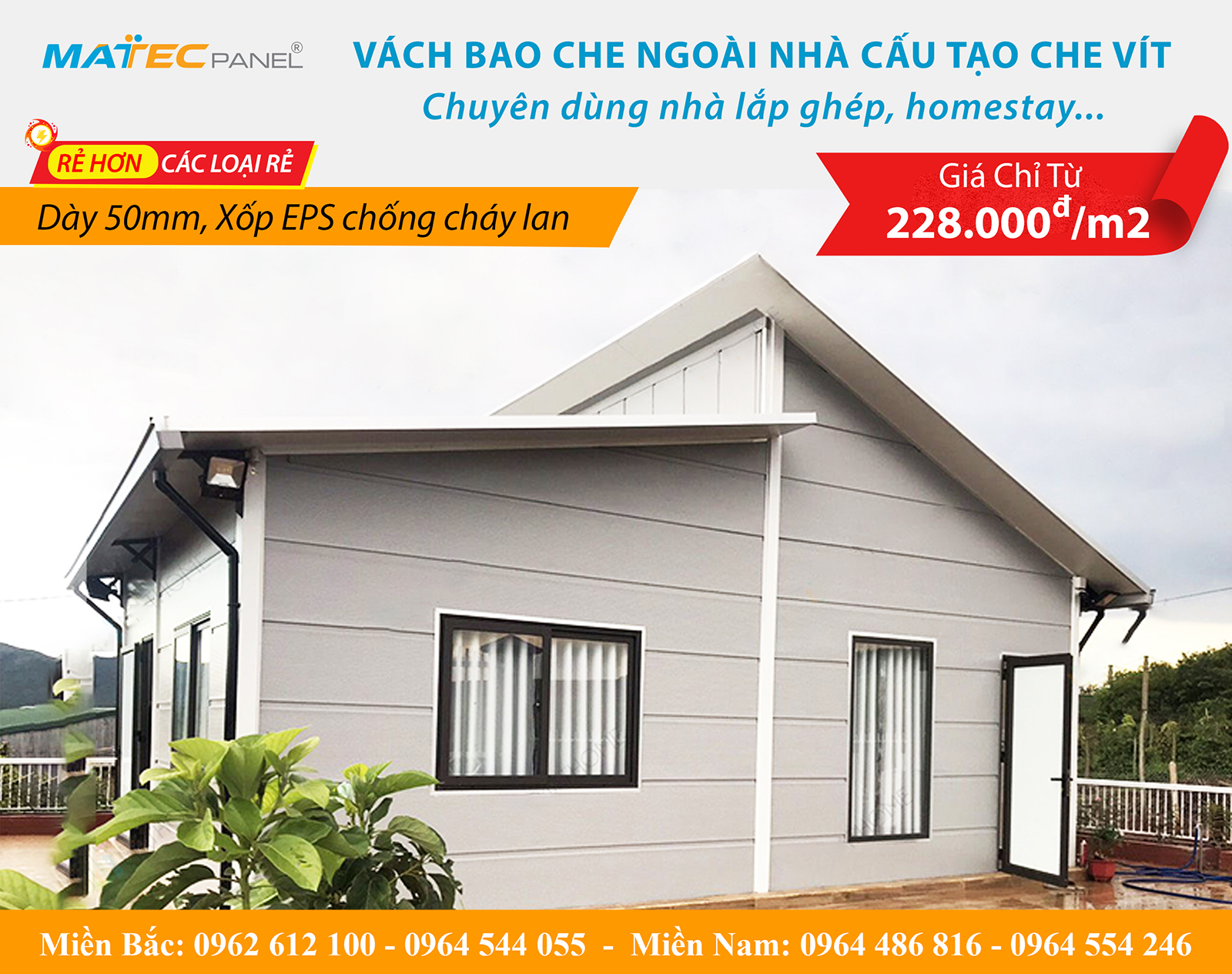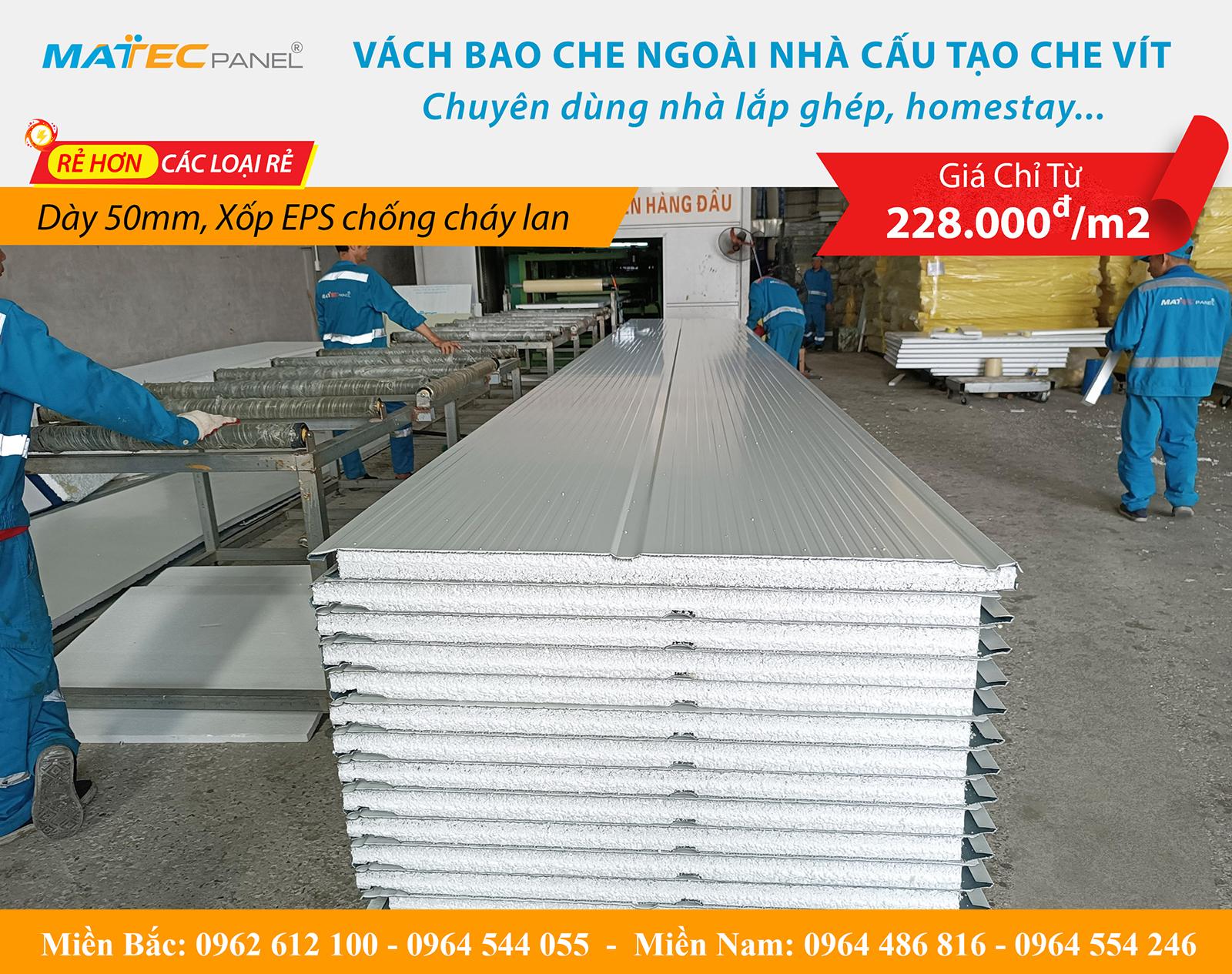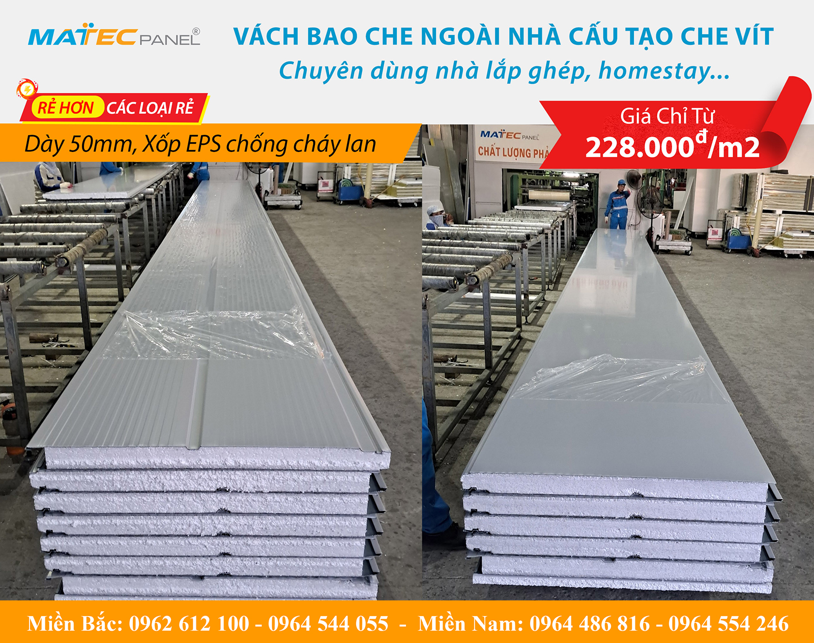Panel EPS vách ngoài trời giá chỉ từ 228.000Đ/m2 của MatecPanel bạn sở hữu ngay:
