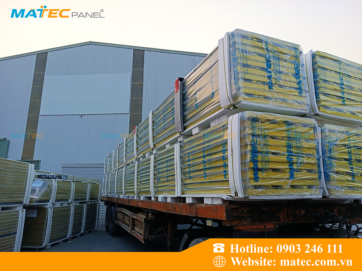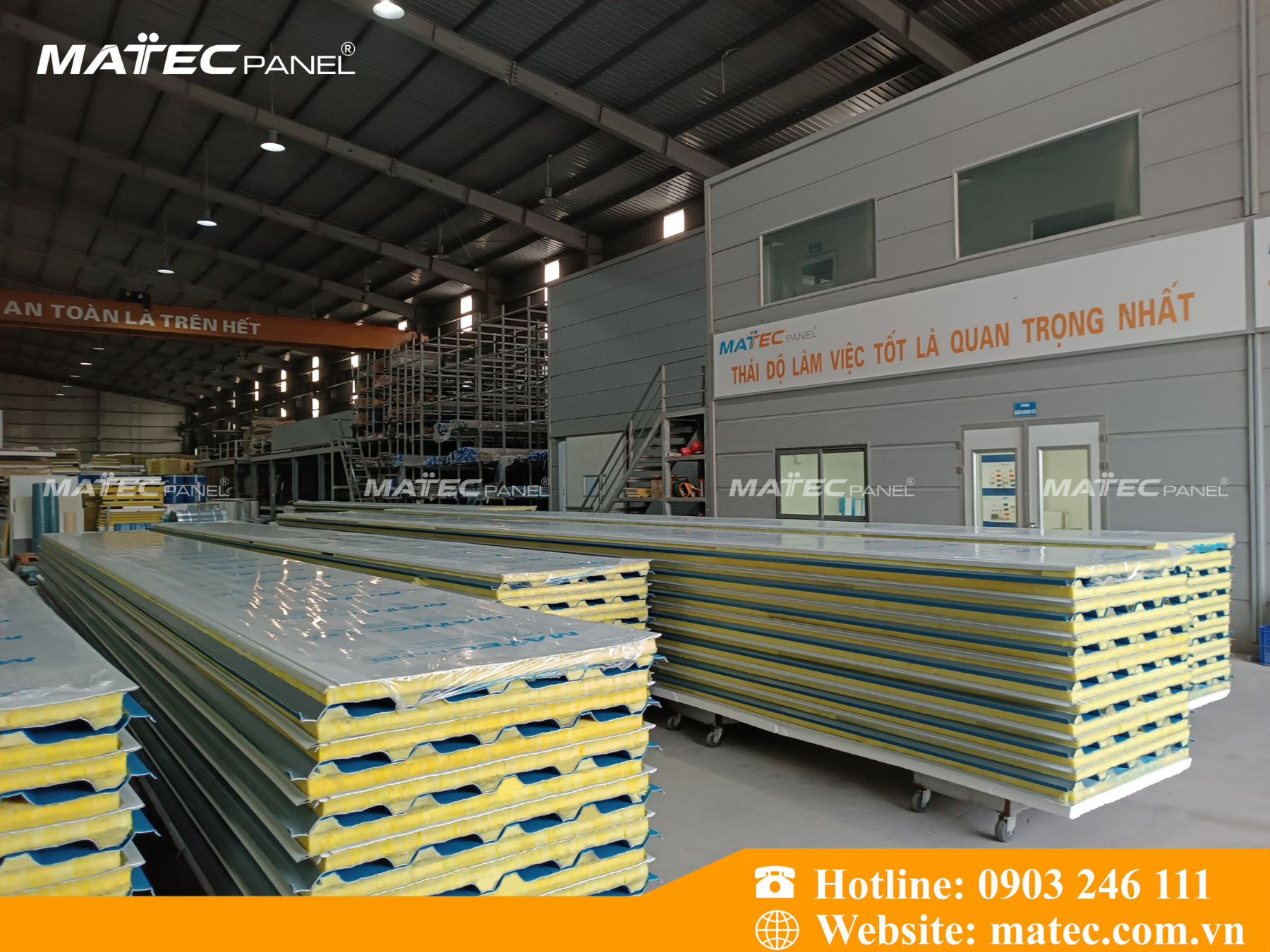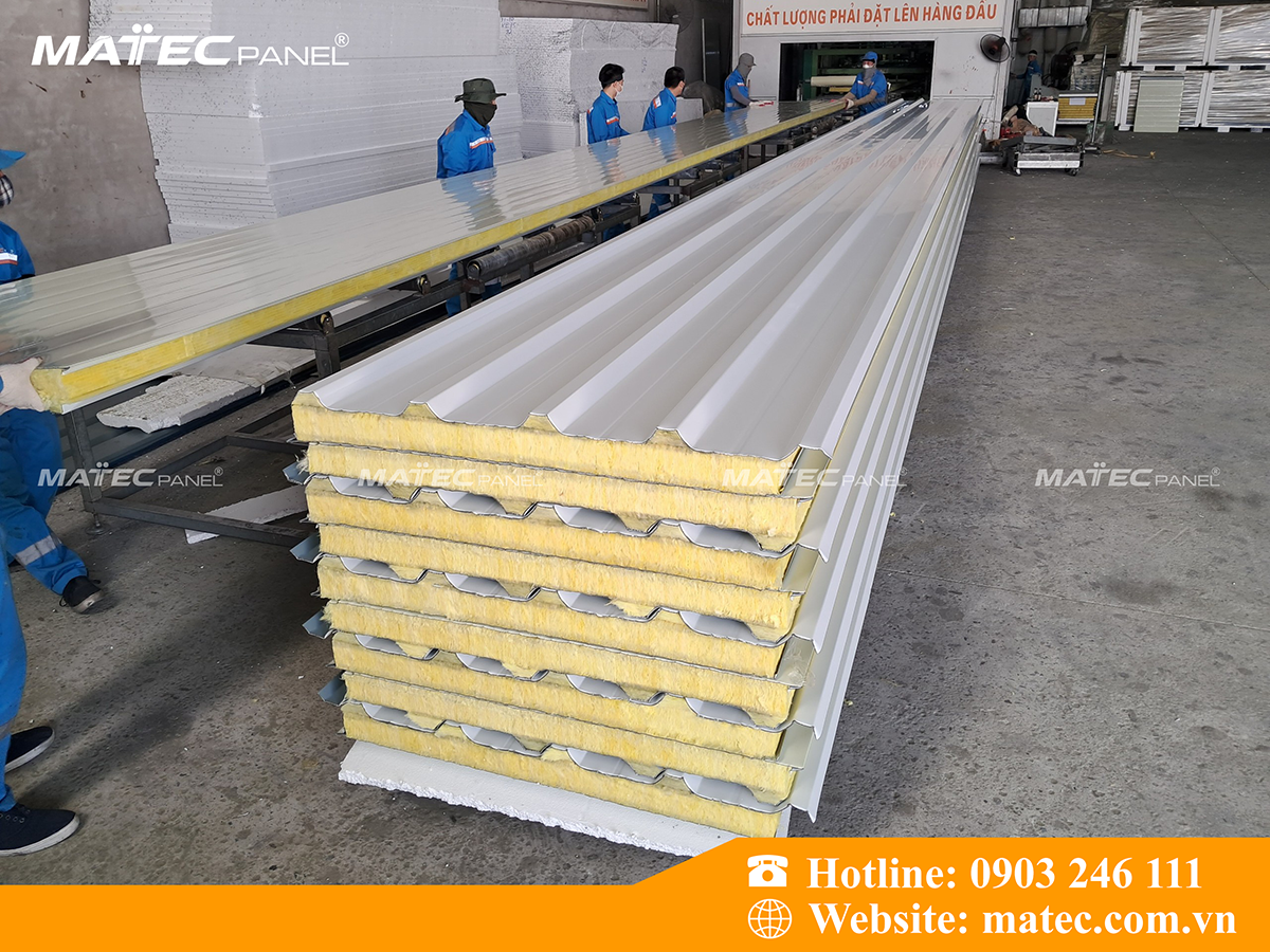 Tham khảo thêm một số hình ảnh về tấm lợp panel bông thủy tinh được sản xuất tại nhà máy MatecPanel.