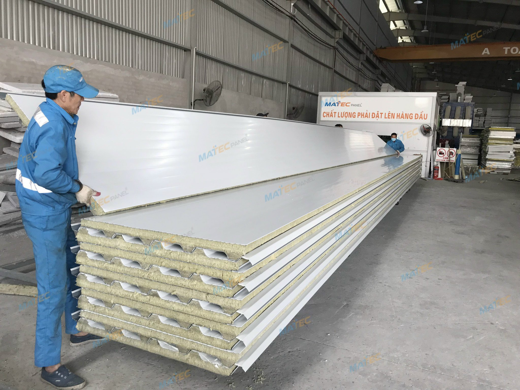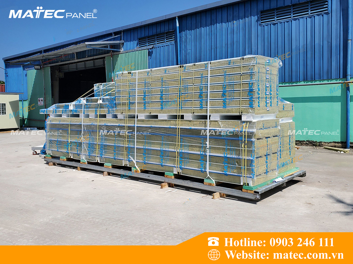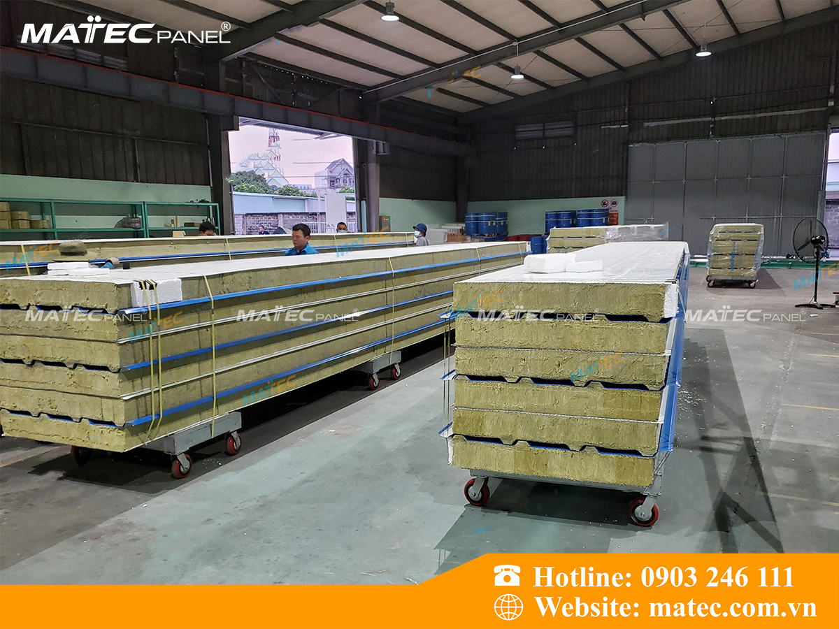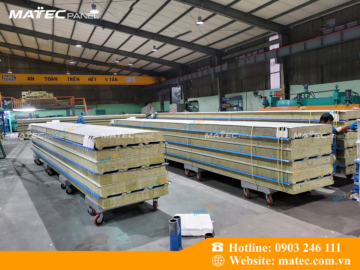 Hình ảnh thực tế tấm mái Panel bông khoáng tại nhà máy MatecPanel