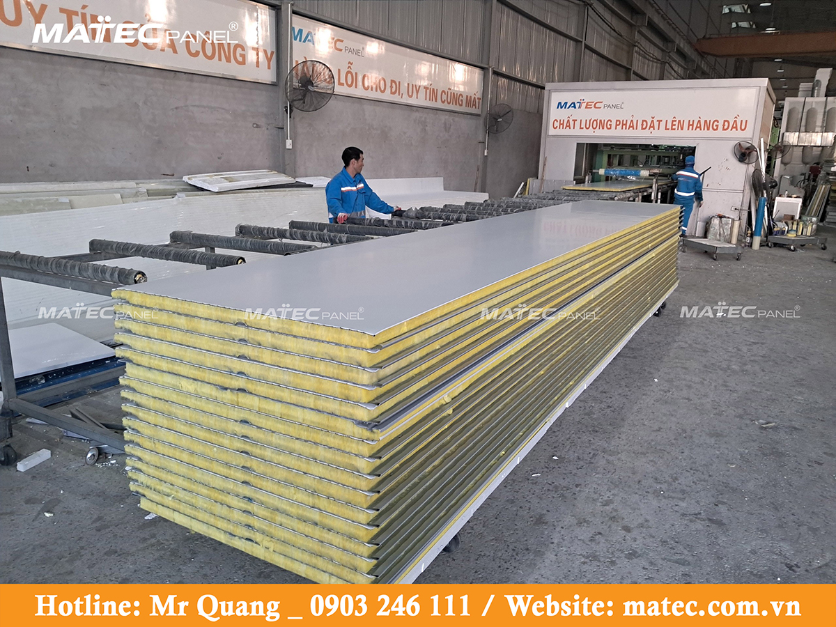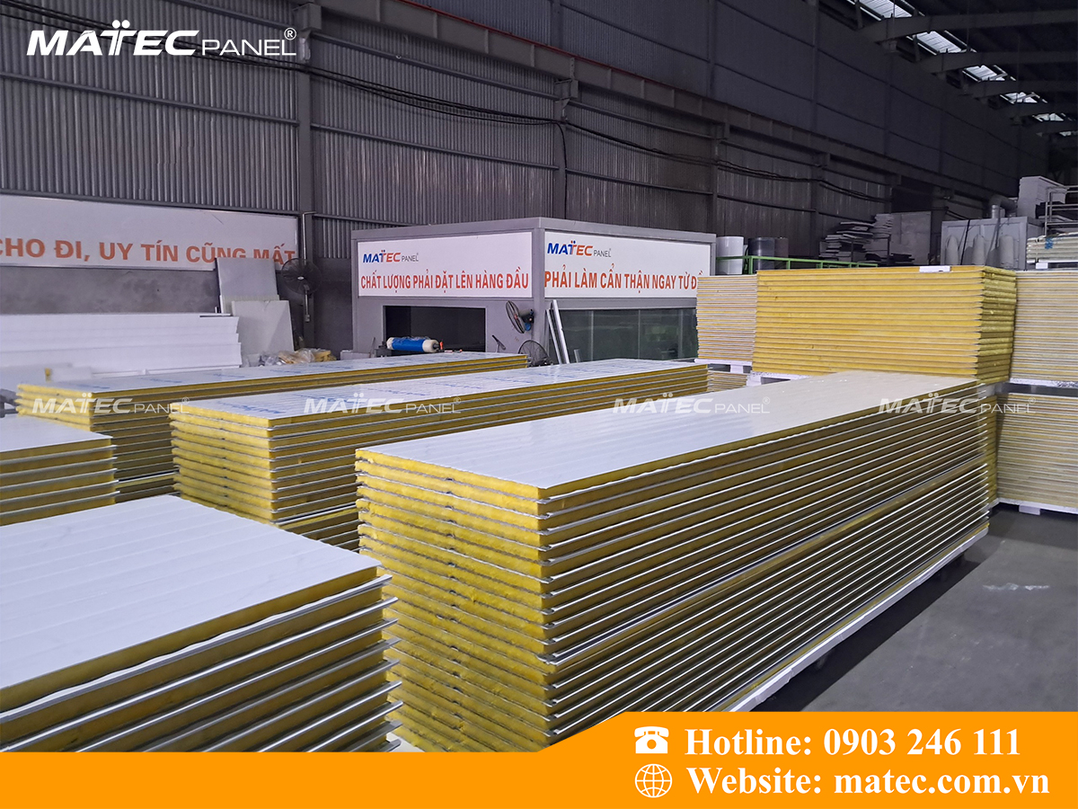 Matec Panel là đơn vị trực tiếp sản xuất các tấm Panel trong đó có cả vách tường Glasswool Panel, dưới đây là một số hình ảnh sản phẩm thực tế tại nhà máy.