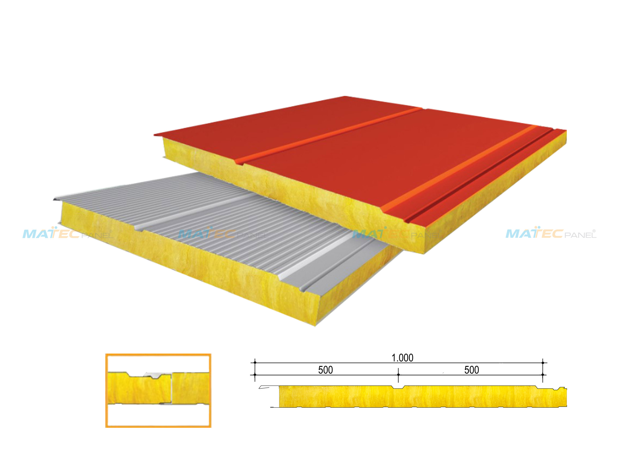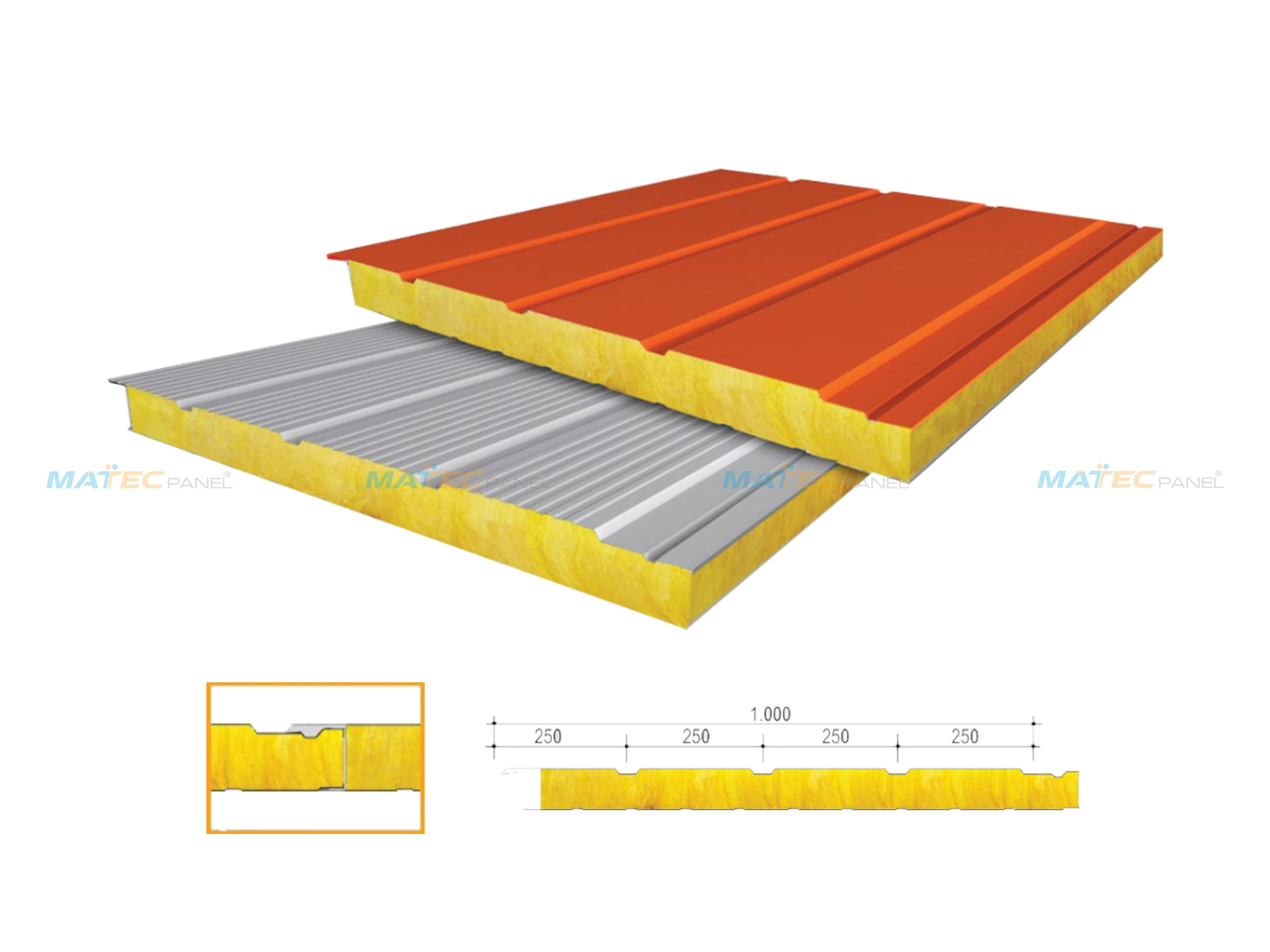 | 1 | Cấu trúc | Hai bề mặt: Lớp tôn mạ kẽm, mạ màu (sơn tĩnh điện) có độ dày 0,4-0,6mm Lớp giữa: Lõi cách âm, cách nhiệt Glasswool (Bông thủy tinh) tỷ trọng 48kg/m3 - 64kg/m3 - 72kg/m3. Bề mặt: Mặt ngoài có 1 hoặc nhiều rãnh sâu trang trí; mặt trong phẳng hoặc có gân chìm tăng cứng. |