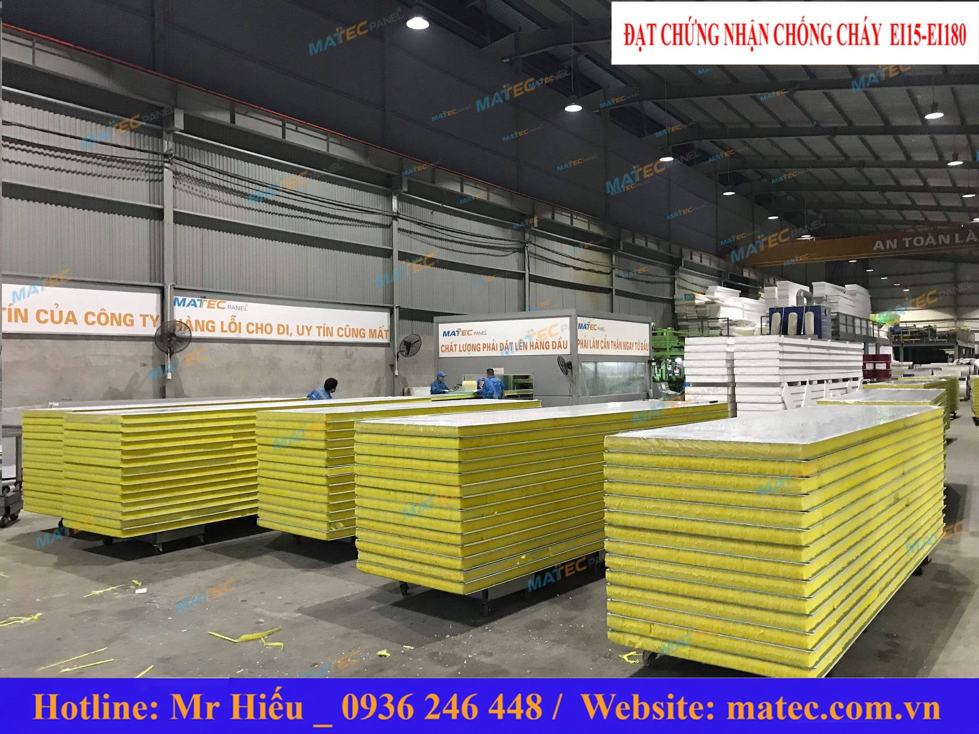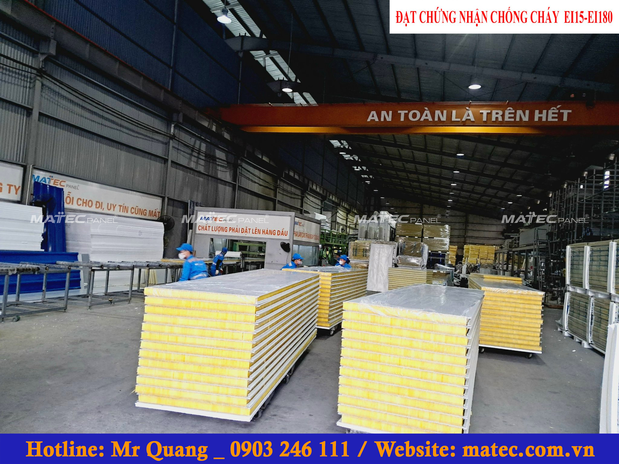 Nhà máy MatecPanel là đơn vị sản xuất đầu tiên chính thức được nhận giấy chứng nhận của cục PCCC, với sản phẩm VÁCH PANEL CHỐNG CHÁY đã đạt chứng nhận EI15. Với dây chuyền sản xuất hiện đại từ Hàn Quốc, MatecPanel không chỉ là đơn vị cung cấp, thi công lắp đặt Vách Ngăn Panel Ngăn Cháy EI15 mà còn cung cấp dịch vụ trọn gói cấp giấy chứng nhận kiểm định và nghiệm thu thành công.